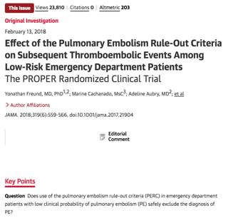 “...a clinical assessment protocol proved to be as effective as blood testing and CT imaging in the emergency department setting for ruling out pulmonary embolism in very low-risk patients.”